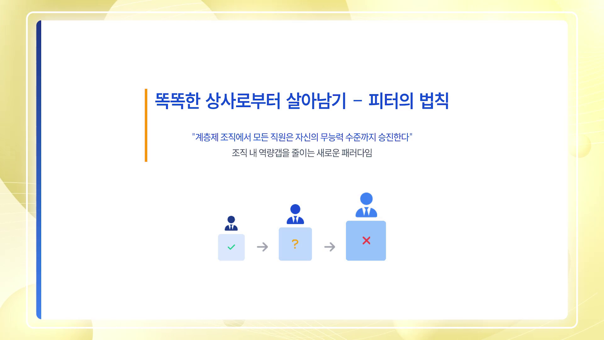 • 리더십, 전략, 성과관리, 업무 생산성, 팀워크, 소통 등